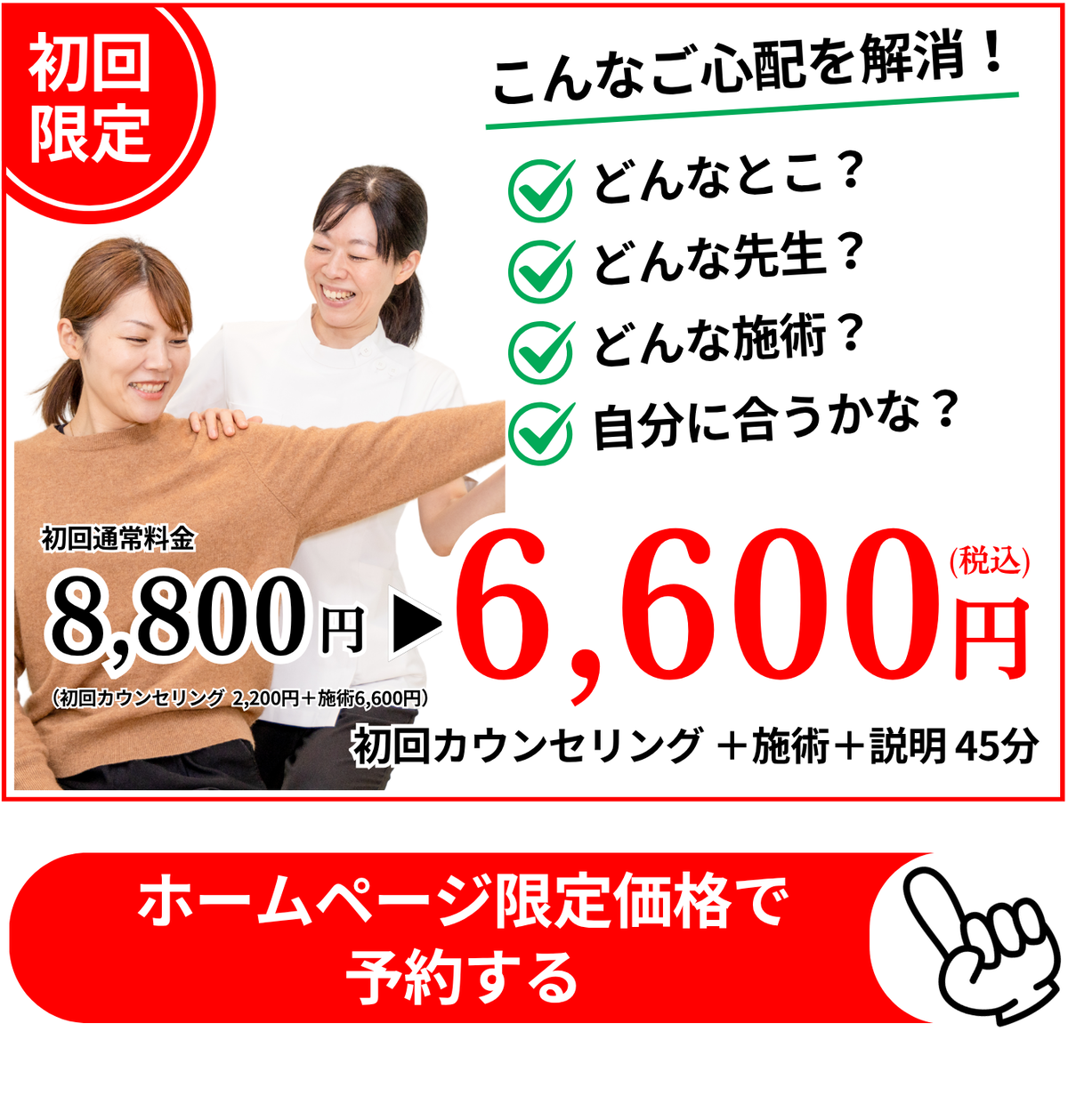 しかもそれだけではなく、整体をした時だけ楽になっても仕方がありません。あなたの生活習慣から、からだの使い方を治さなければまた同じように症状をくり返してしまうからです。そこで当院では再発しにくい身体になるよう、セルフケアストレッチまで指導を致します。